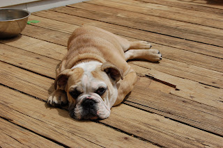 Now, how about a look at the cutest Bulldog ever! Butter will be 5 months old on May 6th. She goes for her last puppy check up this week and we'll make an appointment for her spay then. She's growing so fast and is deceptively heavy. She only has a few more puppy teeth to lose, too.